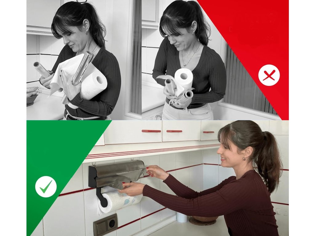 Profesionalni 3-u-1 dozator za foliju i kuhinjske krpe dizajniran je kako bi zadovoljio najzahtjevnije potrebe modernih kućanstava. Trostruka funkcija omogućuje vam da uvijek imate sve što vam je potrebno pri ruci bez kaosa i nepotrebnog pretraživanja. Zahvaljujući ovom originalnom kuhinjskom pomagaču, vaša priprema obroka bit će lakša i brža.
