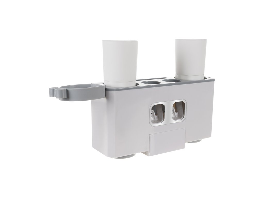 Set držača četkica za zube također je idealan izbor za veću obitelj. Moći ćete pohraniti do 5 četkica za zube u odgovarajući odjeljak. U sustav je moguće istovremeno ugraditi dva pakiranja paste za zube, npr. dječju i za odrasle. Neprocjenjiv dio dozatora je i praktičan držač za fen, češalj ili britvicu.