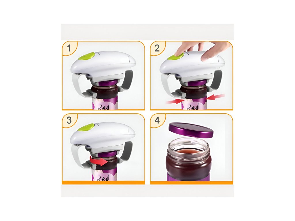 Bilo da trebate otvoriti kompot, džem ili kisele krastavce, automatski otvarač staklenki spreman je obaviti svoj posao. Veličina kapice mu nije bitna. Opremljena je podesivim mehanizmom koji se prilagođava vašim potrebama.