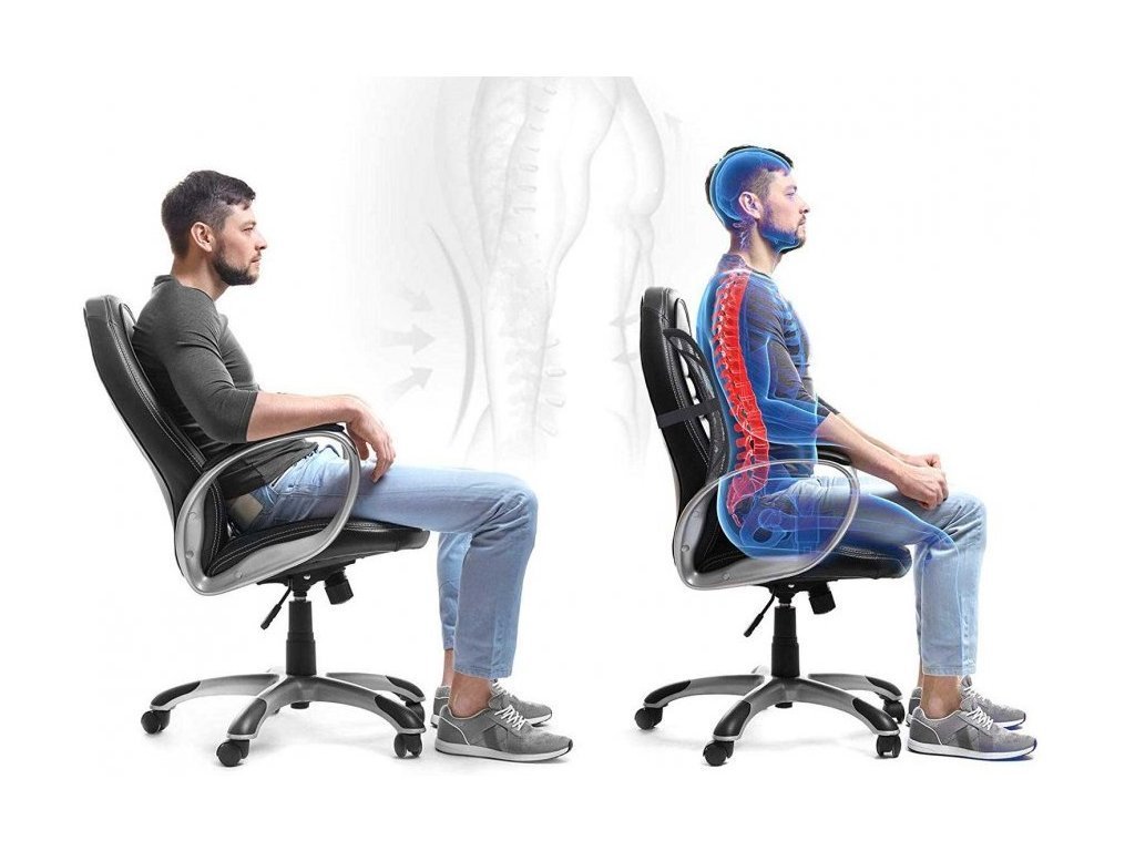 Bederní opěrka je speciálně tvarovaná tak, aby zajistila přirozené prohnutí a oporu zad. Právě tato správná poloha zad zajistí správné držení těla, minimalizuje napětí, bolest a tlak na záda i při dlouhodobém sezení. Při dlouhodobém používání může výrazně eliminovat případné problémy způsobené při dlouhodobém sedavém stylu života.