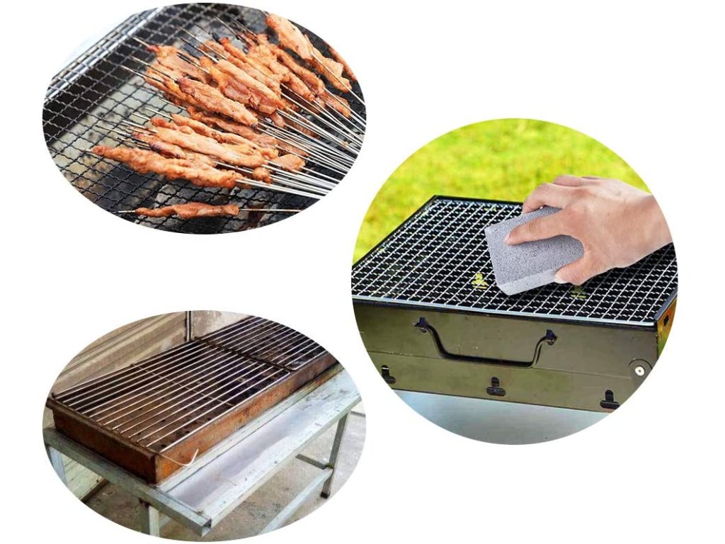 Zahvaljujući posebnom kamenu za čišćenje nove generacije, možete ukloniti tvrdokornu prljavštinu, zagorelost i ostatke hrane s rešetki, roštilja, roštilja u pećnici i drugih materijala bez kemikalija ili drugih jakih sredstava za čišćenje. Kamen je izuzetno učinkovit, a istovremeno ne morate brinuti da će vam se rešetka oštetiti tijekom čišćenja. To je tako učinkovito i učinkovito rješenje. Također ih možete koristiti za čišćenje kade / WC / umivaonika / pločica / bazena i još mnogo toga!