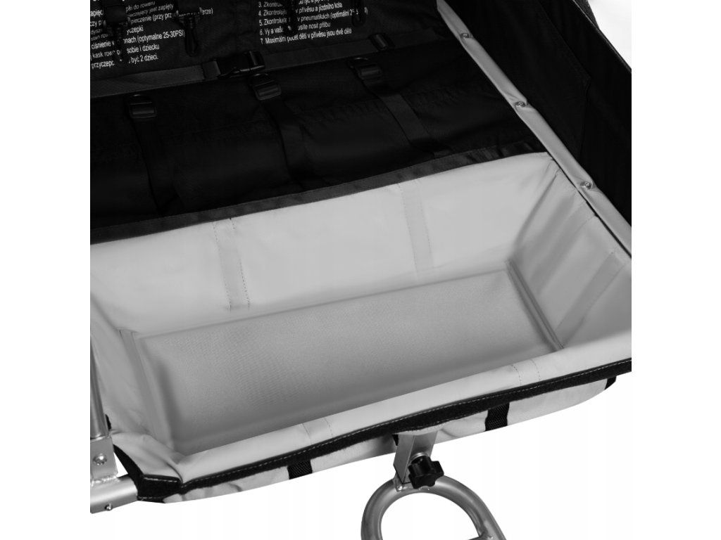 Originalna dječja prikolica za bicikl nudi dovoljno prostora za dvoje djece s nosivošću do 2 × 20 kg, što jamči udobnost čak i za stariju djecu. Prostrano sjedalo pruža udobno putovanje i visoku razinu zaštite zahvaljujući visokokvalitetnim sigurnosnim pojasevima.