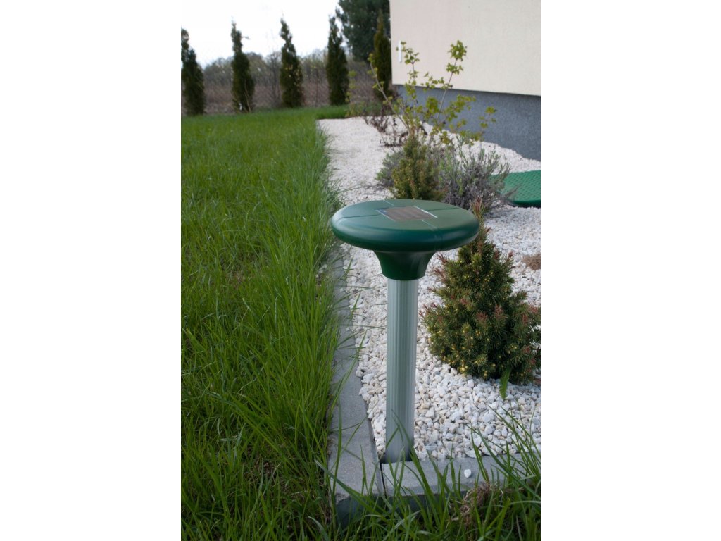 Uređaj je bežični uređaj koji ne zahtijeva održavanje, otporan na promjene vremenskih uvjeta i vodu. Samo ga zabodite u zemlju na željenom mjestu, uključite i automatski će početi raditi. Zatim se ponovno puni pomoću solarne ploče koja se nalazi na vrhu. Na taj način osigurava 24-satnu zaštitu Vašeg vrta.