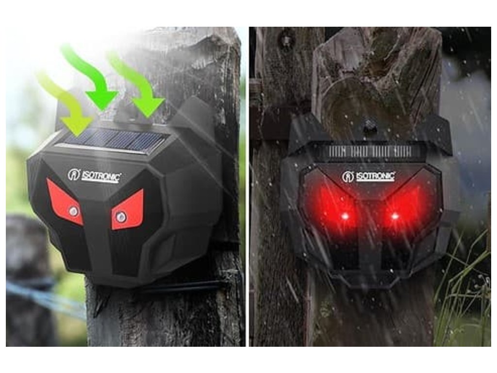 Ovo sredstvo za odvraćanje divljih životinja jedinstveno je po tome što koristi crveno svjetlo. Budući da podsjeća na oči predatora, životinje ga doživljavaju kao prijetnju. Uređaj će držati neželjene životinje na sigurnoj udaljenosti od vašeg imanja.