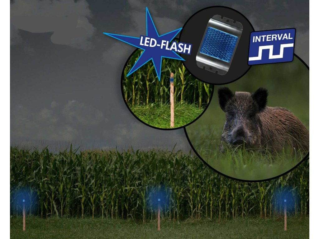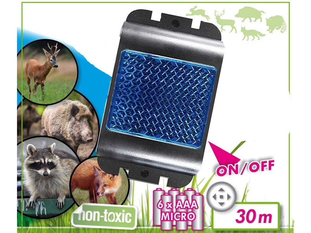 Ovo jedinstveno strašilo koristi najsuvremeniju tehnologiju plavog svjetla koje je bešumno i netoksično za zaštitu vaše imovine. Potvrđeni odvraćajući učinak plavih reflektora u plašenju životinja široko se koristi. Uređaj automatski emitira sekvencu svjetla (3x plavo protiv divljih životinja) noću i u sumrak, služeći kao prirodna i trajna barijera. Plava je vrlo rijetka u prirodi (flora i fauna) i označava opasnost za životinje. Većina noćnih životinja aktivno izbjegava ovu svjetlost. Osjećaju strah i tjeskobu i stoga izbjegavaju zaštićenu okolinu.