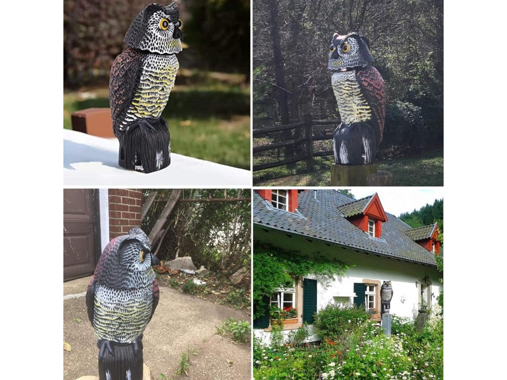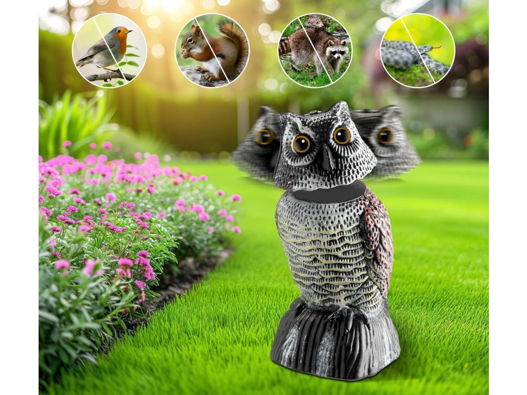 Uništen usjev, oštećene biljke ili prljava terasa mogu biti prava muka. Želite li učinkovito spriječiti takve situacije, model sove s rotirajućom glavom, koja radi kao strašilo, idealno je rješenje za vas.