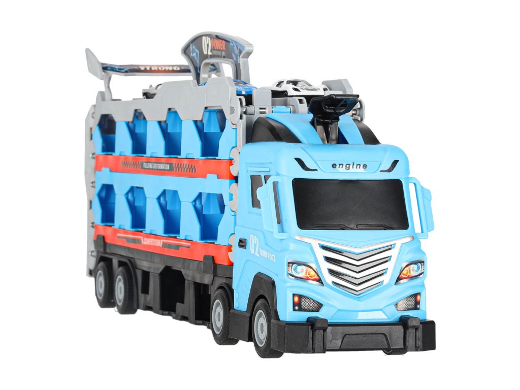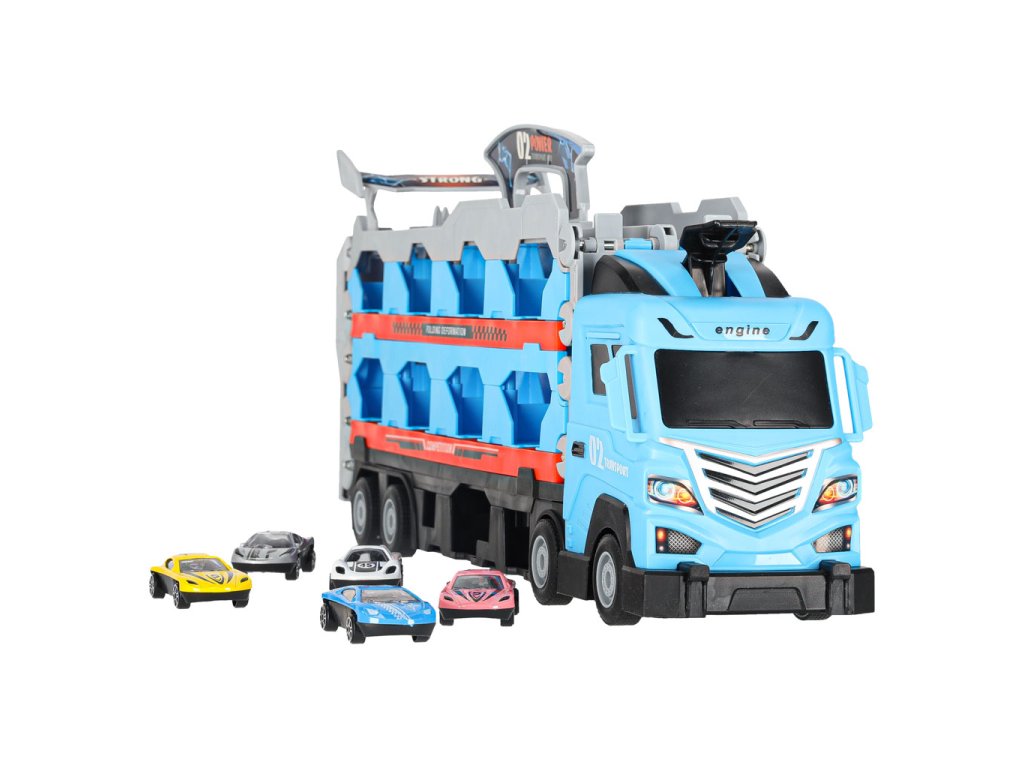 Praktični dizajn transportnog kamiona omogućuje jednostavan transport i skladištenje, što igračku čini prikladnom čak i za manju prostoriju. Spremanje automobila izravno u karoseriju kamiona također je zabavan dio same igre.