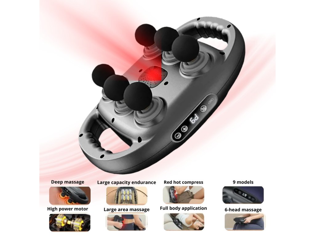 Ovaj prijenosni pištolj za masažu opremljen je sa šest snažnih masažnih glava i inteligentnom kontrolom brzine, što vam omogućuje podešavanje brzine kako biste osigurali pravi pritisak za svoje potrebe. Simultana masaža više točaka pruža dublji pritisak i potpunu pokrivenost mišića za brži oporavak i ublažavanje napetosti.
