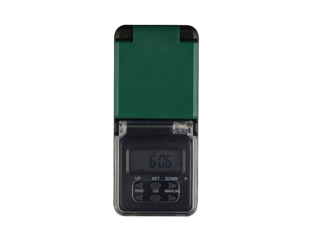 Fantastična vrtna utičnica zaštićena je plastičnim poklopcem i ima praktični digitalni mjerač vremena. Pomoću njega možete podesiti vrijeme rada vrtne rasvjete ili u određeno vrijeme isključiti sustav za navodnjavanje vrta.
