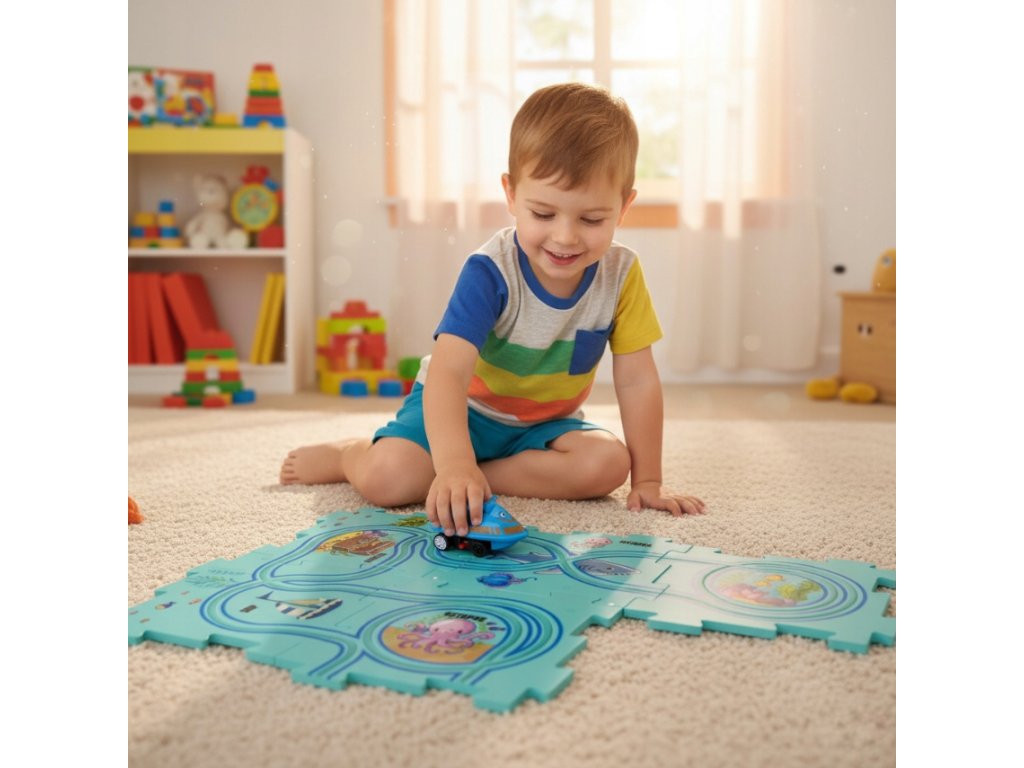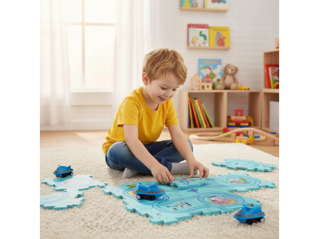 Dječja staza slagalica namijenjena je sastavljanju, rastavljanju i izmišljanju novih ruta. To omogućuje djetetu razvoj fine motorike, logičkog razmišljanja i prostorne mašte.
