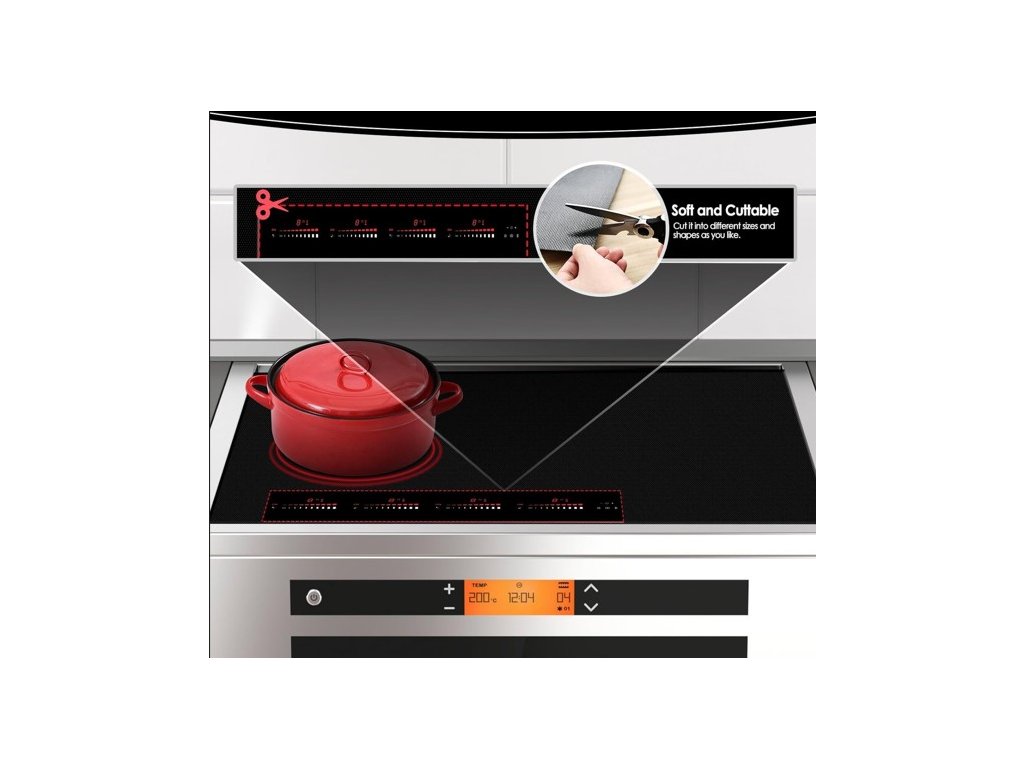 Silikonska podloga za indukcijske ploče za kuhanje može se jednostavno prilagoditi veličini vaše ploče za kuhanje. Možete je škarama izrezati i oblikovati u oblik koji vam najbolje odgovara. Na taj način možete izrezati, na primjer, otvor za upravljačku ploču.