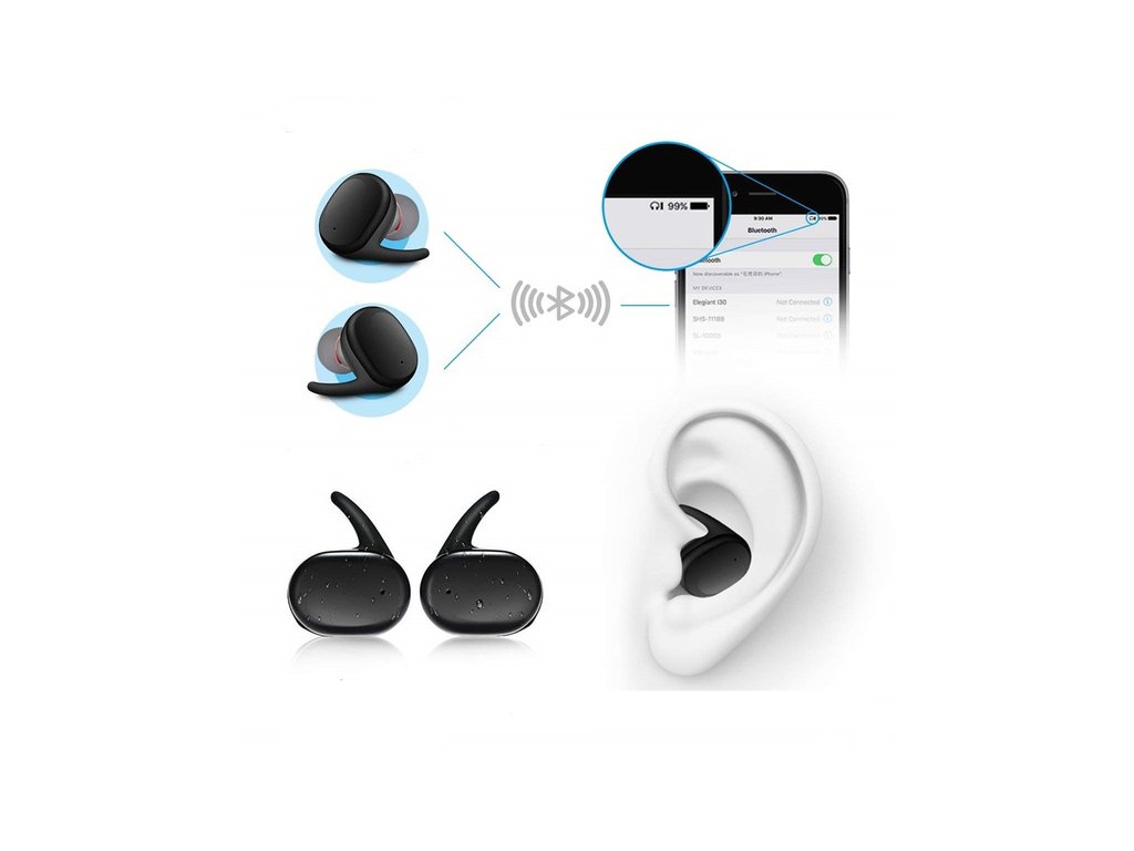 Bežične slušalice odlikuju se ergonomskim i funkcionalnim dizajnom. Savršeno se drže na uhu tijekom bilo kojeg pokreta. Prilagođene su tako da ne pritišću uho ni pri dužem nošenju. Na taj način možete udobno uživati u jedinstvenom zvuku.