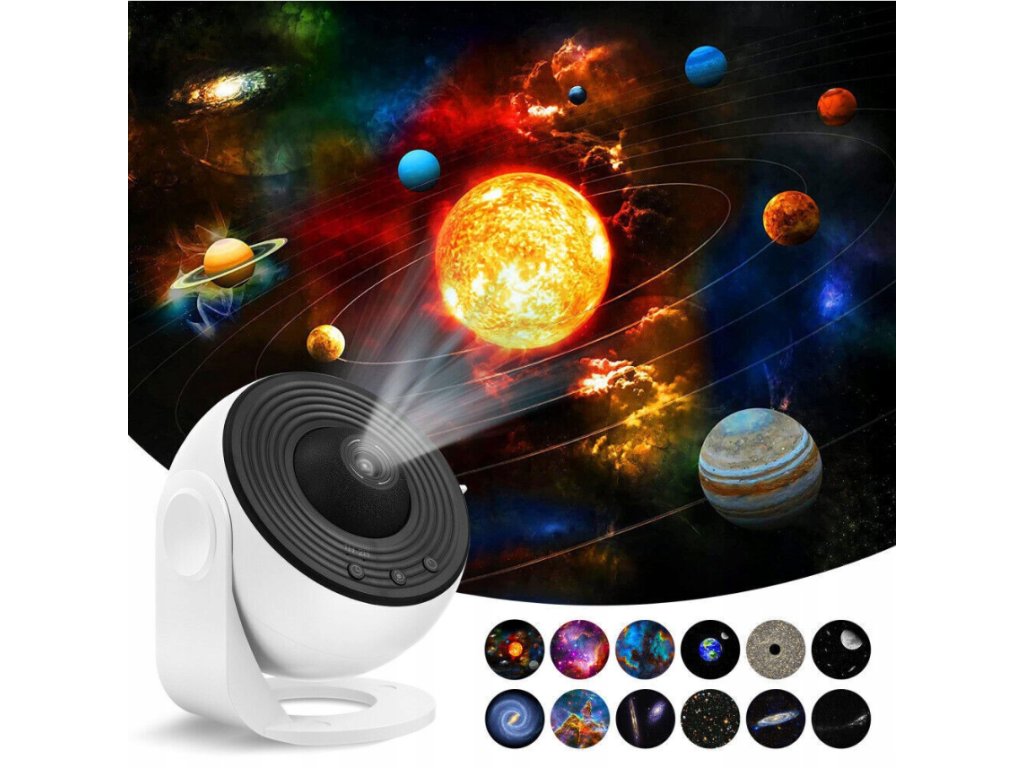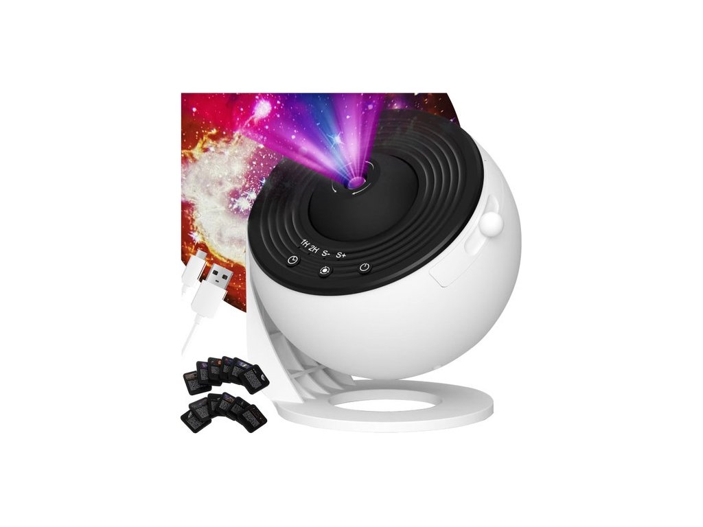 Jedinstveni LED projektor zvijezda omogućuje vam projiciranje zapanjujuće svjetlosne predstave upravo u vašem domu. Jednostavno odaberite između 12 slajdova koji prikazuju jasne i realistične slike galaksija, maglica, Mjeseca, Sunčevog sustava i drugih svemirskih fenomena.