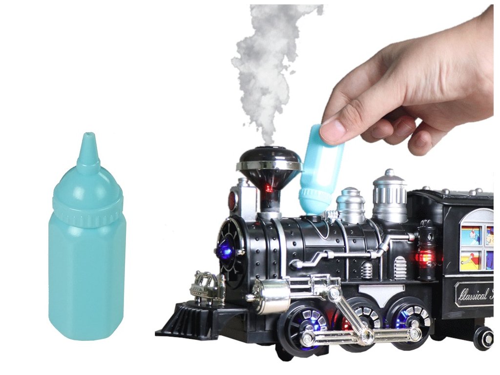 Vlak je dizajniran da reproducira pravi stroj do najsitnijih detalja. Prednost su zvučni efekti igračke, zvuk vlaka i prednje svjetlo lokomotive. Još jedna prednost proizvoda je priložena kapaljka - samo ulijte nekoliko kapi u rupu na lokomotivi. Dok se krećete po tračnicama, možete vidjeti paru kako kulja iz dimnjaka.