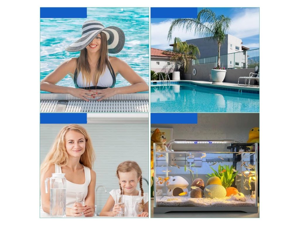 - Pomaže u kontroli pH, klora i alkalnosti vode