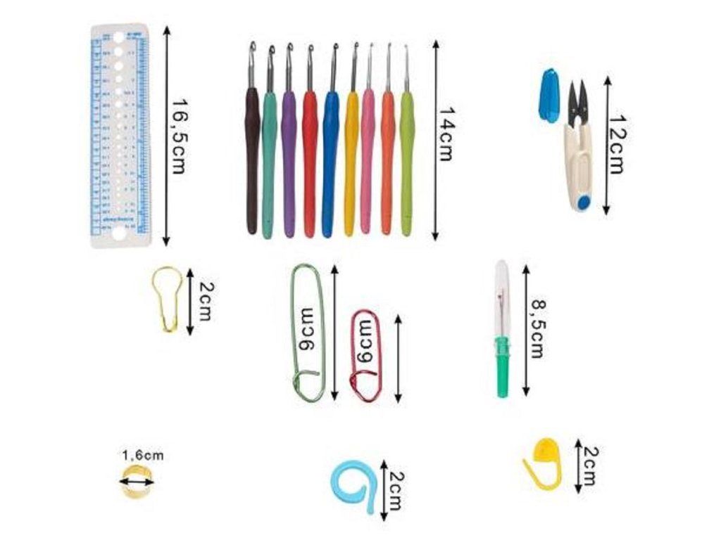 Komplet za heklanje obogaćen je i drugim priborom koji vam može olakšati projekt. Na taj način uvijek možete imati sav potreban alat pri ruci i ne morate ništa dodatno kupovati.