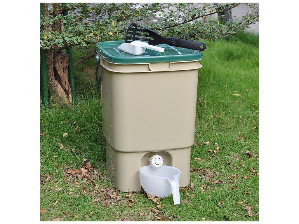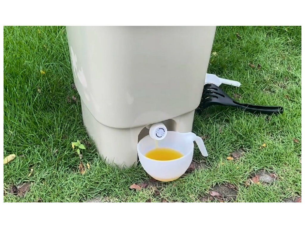 Tekućina koja se nakuplja na dnu kompostera izuzetno je bogat izvor hranjivih tvari za biljke. Zato ovaj kuhinjski komposter ima i slavinu koja vam omogućuje jednostavno i sigurno ispuštanje procjedne vode iz komposta.