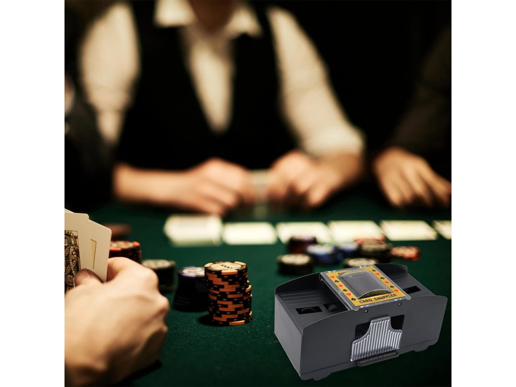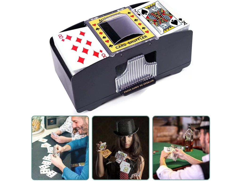 Automatski mješač karata ima dva pretinca u koje možete ubaciti do dva špila ili jedan špil koji podijelite na dvije polovice. Zahvaljujući tome, možete uživati u bilo kojoj kartaškoj igri.