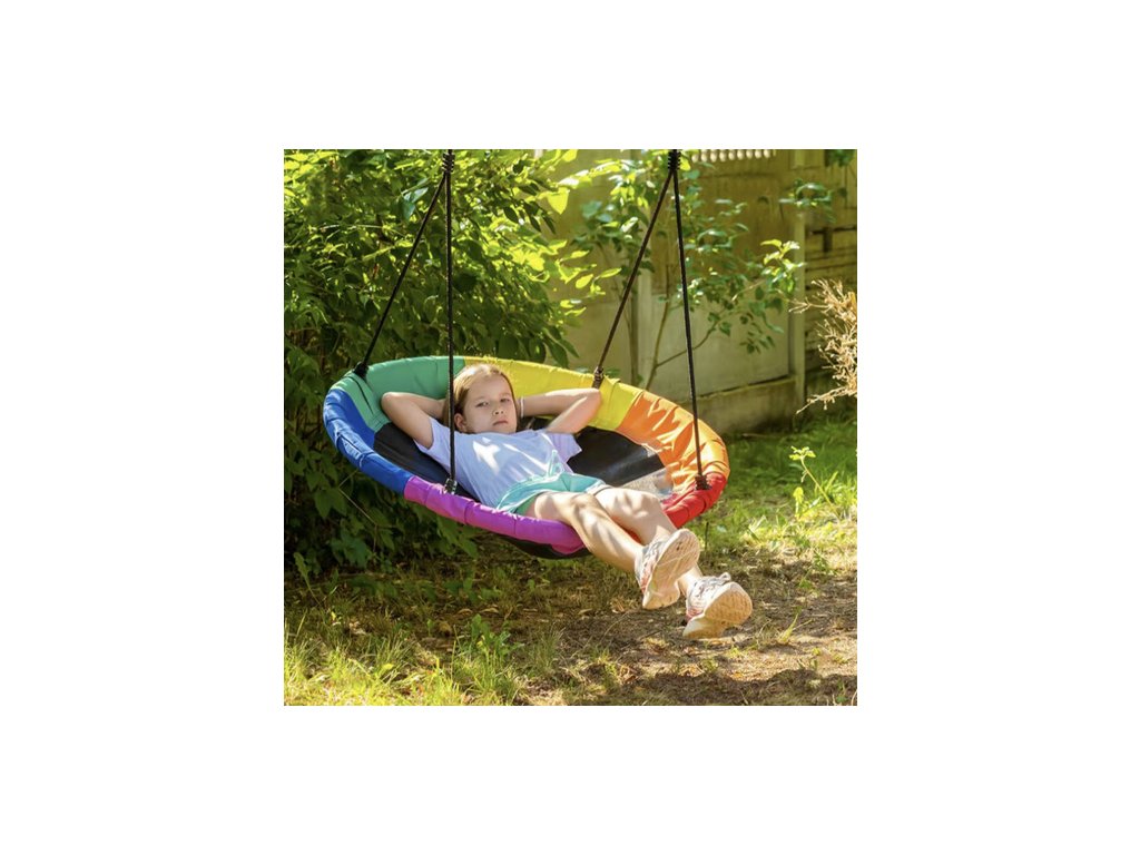Moderan i moderan dizajn, upotpunjen razigranim bojama, oduševit će i mlade i stare. Ljuljačka u obliku rodinog gnijezda prikladna je za svaki vrt, terasu ili dvorište.
