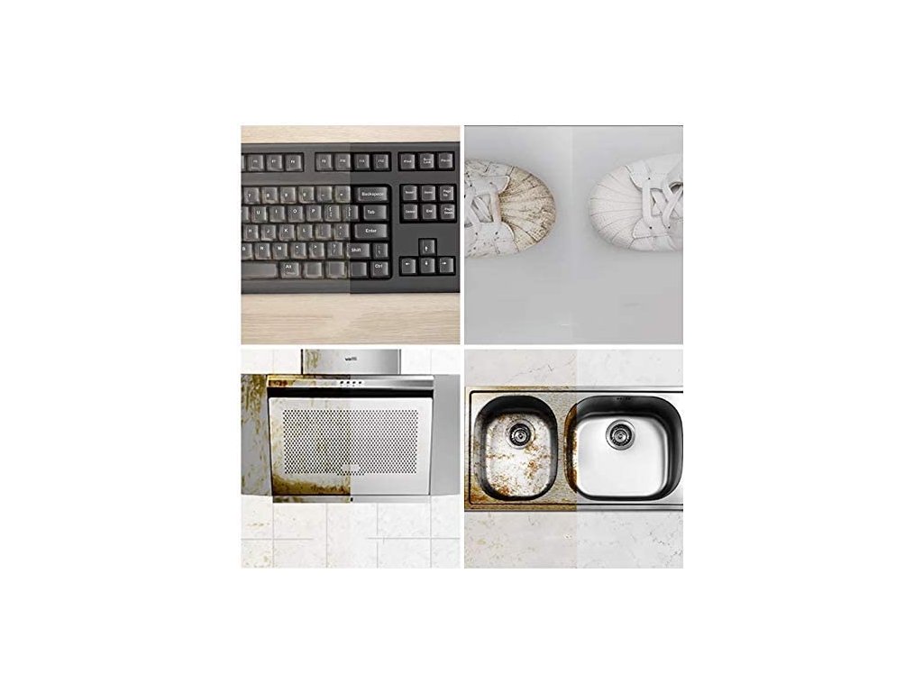 Zahvaljujući posebnom materijalu nove generacije melamina, možete ukloniti tvrdokornu prljavštinu bez kemikalija ili drugih sredstava za čišćenje i pomoćnih sredstava. Pogodan je za pločice, pločice, podove, staklo, metal, parkete, stolove, stolice, vrtni namještaj, mrlje od katrana, felge kotača, mrlje od tonera ili pečata, unutrašnjost automobila, kožu, cipele, mrlje od potplata cipela, onečišćenja od markera. , usne, dječje naškrabane zidove, mrlje na štednjacima, sasušenu masnoću, prozorska stakla, ostatke žvakaćih guma, kamenac iz slavina, ali i naslage uzrokovane vremenskim prilikama na vrtnom namještaju itd.