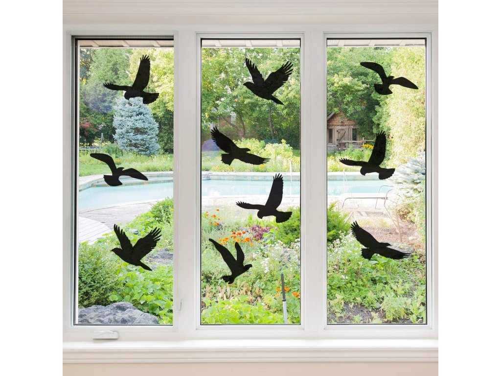 Naljepnice za plašenje ptica oponašaju siluetu ptice grabljivice. Ptice prirodno izbjegavaju predatore, pa će se držati što dalje od vaših prozora. Naljepnice također poništavaju odraze krajolika na prozoru, čime se sprječavaju fatalni sudari.