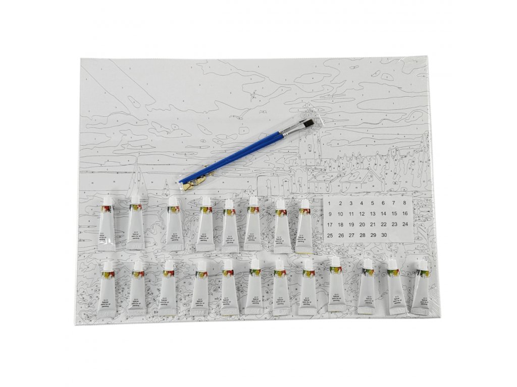 Inspirativan pribor za slikanje po brojevima uključuje kompletan set visokokvalitetnih akrilnih boja koje su posebno odabrane za svaku sliku. Boje su žive i postojane, osiguravajući dugotrajnu ljepotu vašeg rada. Uključeni su i kistovi različitih debljina koji će vam omogućiti precizno i detaljno slikanje.