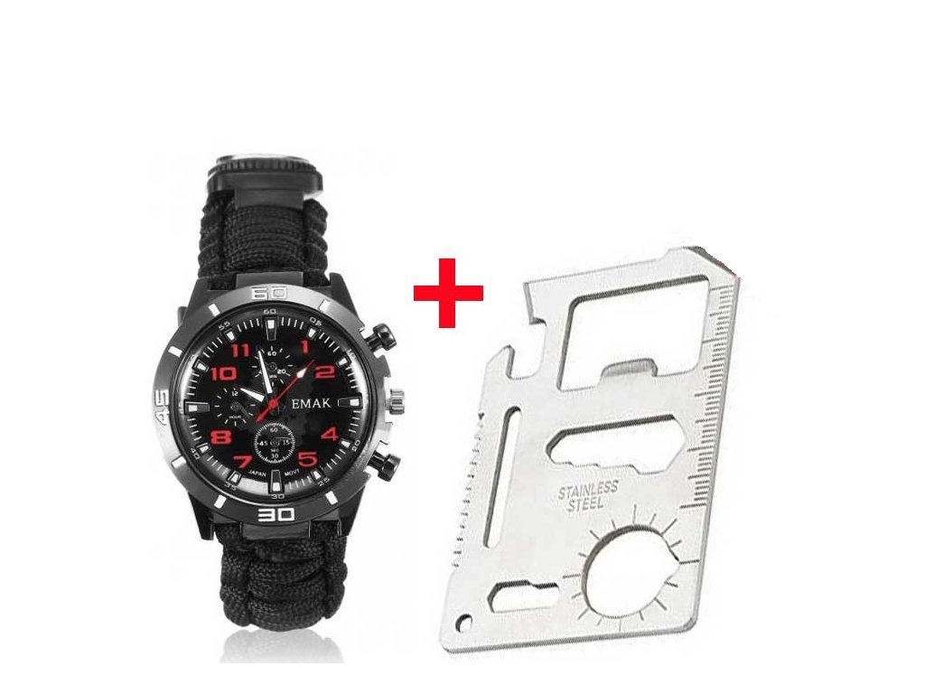 Paracord hodinky pro přežití s kompasem a karta přežití