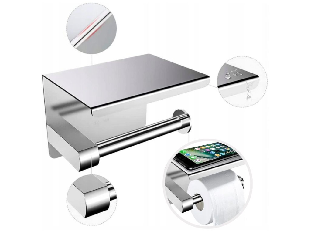 Nevjerojatan držač role toaletnog papira s prostorom za pohranu vašeg telefona i ostalih kupaonskih predmeta ima univerzalni dizajn koji odgovara svakoj kupaonici. Visoka kvaliteta izrade i elegantan izgled čine ovaj proizvod praktičnim i elegantnim dodatkom vašoj kupaonici, bilo da je moderna ili klasična.