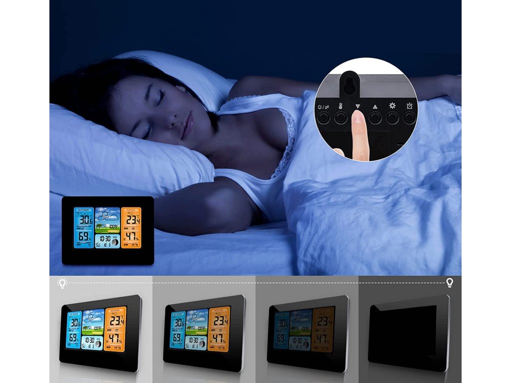 Bežična meteorološka stanica ima jasan LCD zaslon u boji zahvaljujući kojem ćete imati savršen pregled svih vremenskih podataka. Pozadinsko osvjetljenje omogućuje čitanje informacija čak iu mraku. Automatski se gasi nakon nekog vremena, što je ekonomično pogotovo u slučaju rada na baterije.