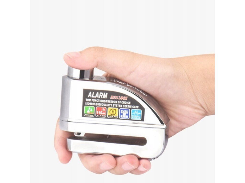 Sigurnosna brava kočionog diska koristi ugrađeni alarm s intenzitetom do 120 dB. To je razina koju ljudi oko vas neće primijetiti. Alarm se aktivira vibracijom, tako da može odmah reagirati na svaki pokušaj manipulacije vozilom.