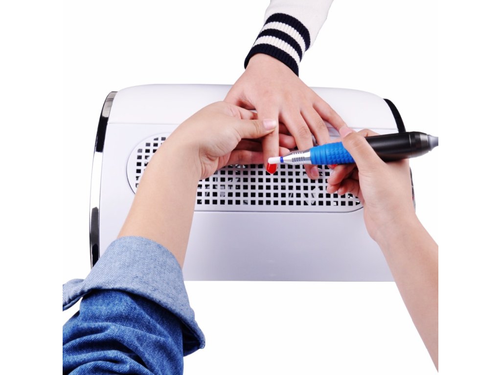 Jedinstveni usisivač prašine za nokte vrlo je jednostavan za korištenje. Prije uporabe spojite uređaj na električnu mrežu. Tijekom manikure samo stavite ruku na njega, uključite uređaj i prašina će se apsorbirati direktno dok pilite i brusite nokat.