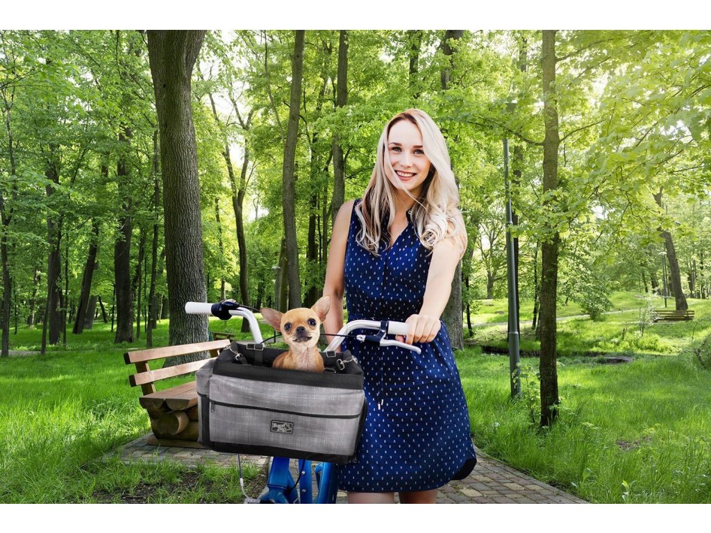 Košara za pse na biciklu opremljena je s dvije ručke tako da je možete udobno nositi s bicikla. Neprocjenjiva značajka je i praktičan džep za vaše osobne predmete ili pseću opremu.