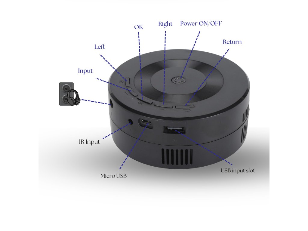 Mini LED projektor je jedinstveni uređaj koji nudi izvrsne mogućnosti projekcije videa, slika i drugih sadržaja. Ima kompaktan i moderan dizajn. Lagan je, kompaktan i lako prenosiv. Osim toga, ima jednostavan, jasan i lako razumljiv izbornik.