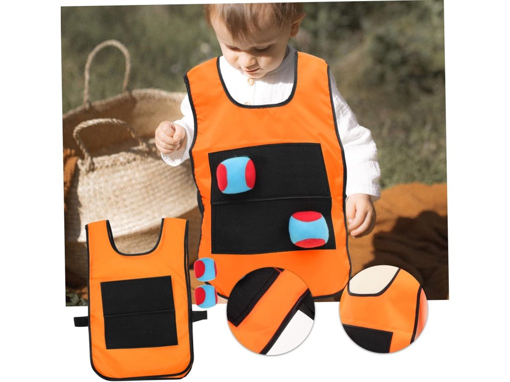 Paket uključuje praktični prsluk s čičkom, koji je lagan, udoban i prilagođen aktivnoj igri. Ima površinu za igru na koju se loptice mogu lako pričvrstiti. Prsluk je upečatljiv i atraktivan svojom bogatom bojom, što dodatno povećava radost igre.