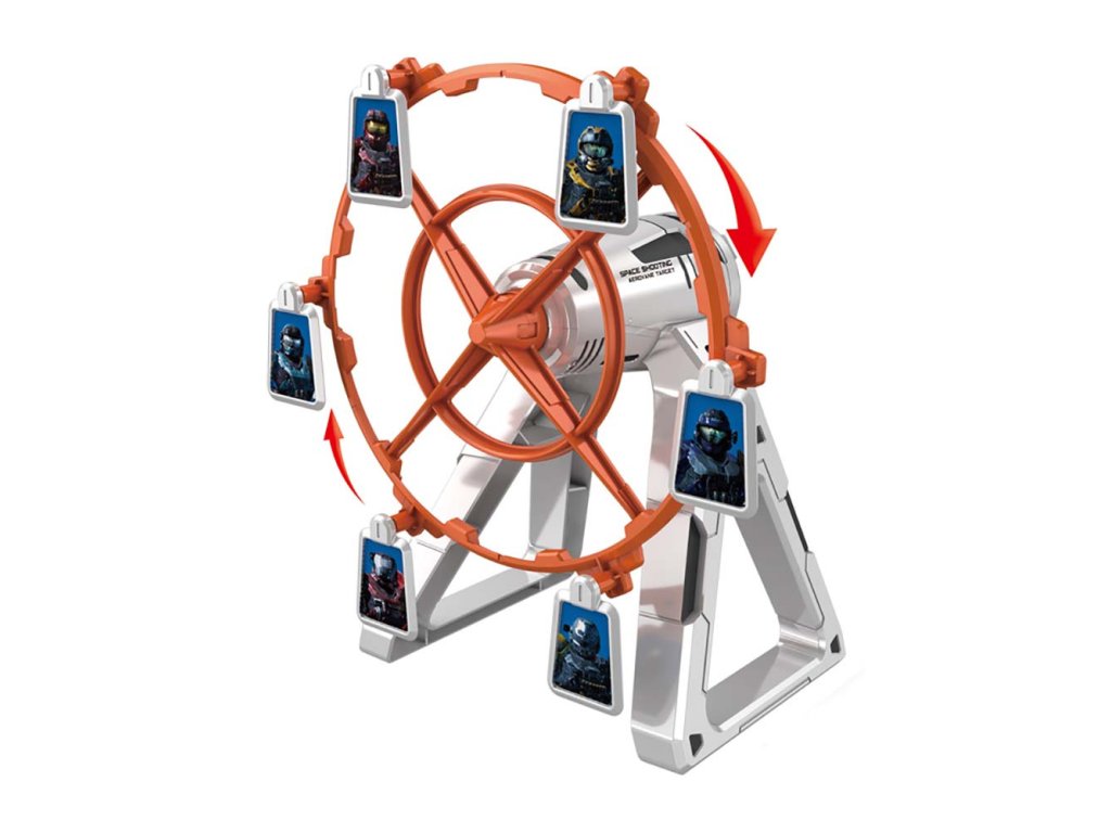 S rotirajućom metom gađanje će biti još impresivnije i uzbudljivije. Rotirajuća meta opremljena je magnetskim metama na kojima možete koristiti magnetske figure koje prikazuju različite akcijske figure. Magnetne figure možete jednostavno postaviti bilo kojim redoslijedom na metu.