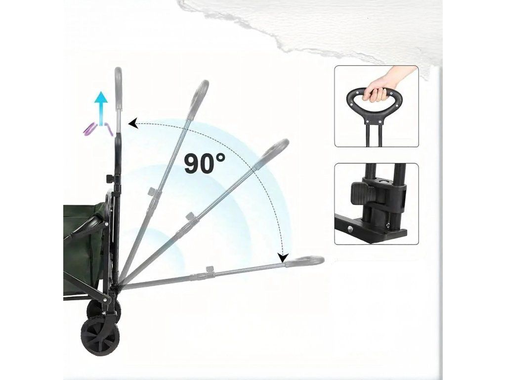 Ručka također ima ergonomski oblik. Zahvaljujući njoj, sklopiva transportna kolica mogu se vući ili gurati s apsolutnom udobnošću, smanjujući umor ruku i zglobova, čak i s težim teretima.