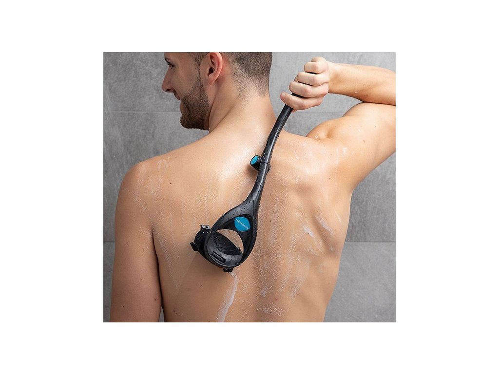 Zahvaljujući inovativnom ergonomskom dizajnu u obliku slova S, omogućuje lak i nesmetan pristup najtežim područjima. Može se koristiti na suhom ili pod tušem, sklopiv je i uključuje razne dodatke, poput praktične kupaonske vješalice za jednostavno spremanje.