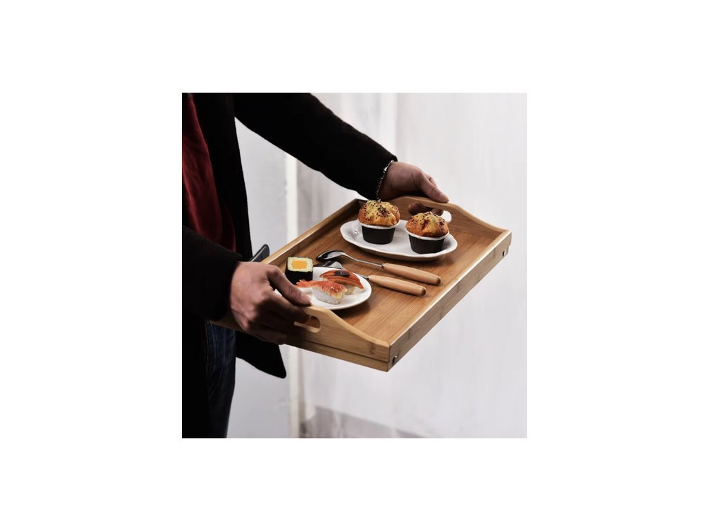 Bambusov stol za doručak dovoljno je prostran da se na njega smjeste tanjur, šalica i pribor za jelo. Zahvaljujući svojoj stabilnosti, ne ljulja se tijekom upotrebe i nudi sigurno posluživanje. Površina je glatka i jednostavna za održavanje, tako da je možete jednostavno obrisati vlažnom krpom.