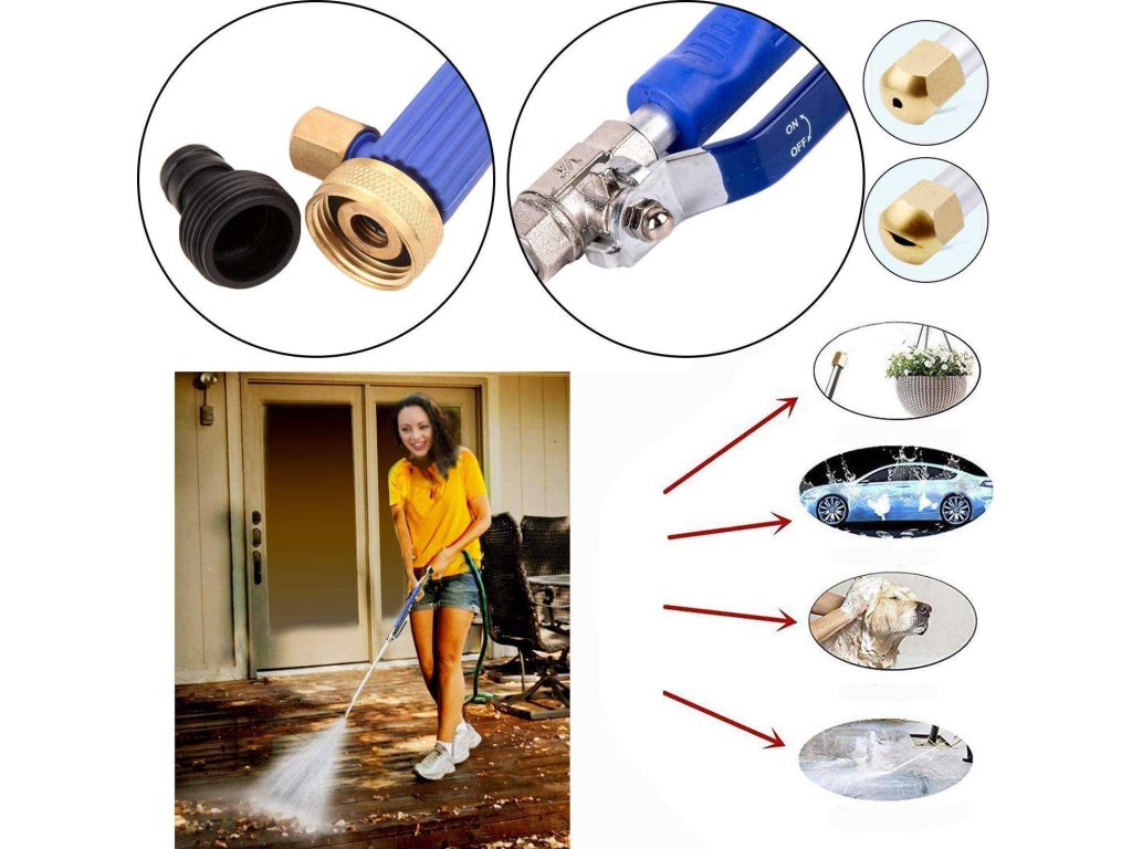Visokotlačni vodeni mlaz dizajniran je da vaše vrtno crijevo u trenu pretvori u profesionalni višenamjenski uređaj. Nije važno trebate li zalijevati travnjak, čistiti automobil, terasu, vrtni namještaj ili prozore, možete to učiniti udobno uz ovaj visokotlačni vape.