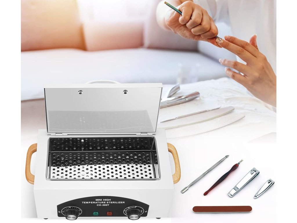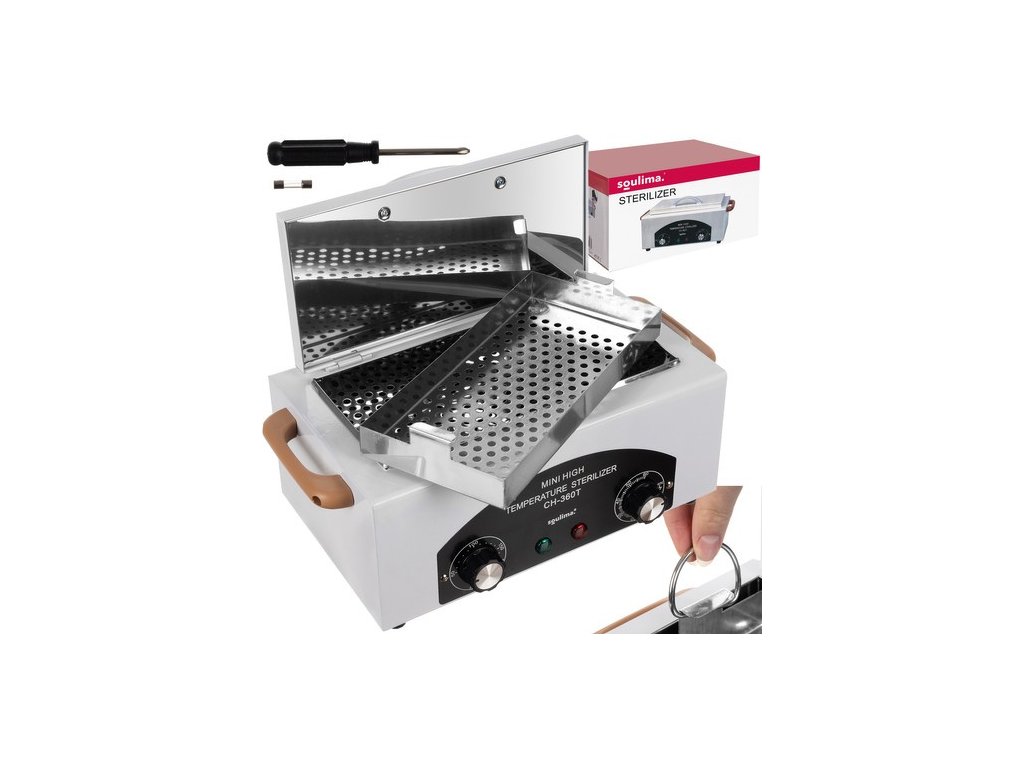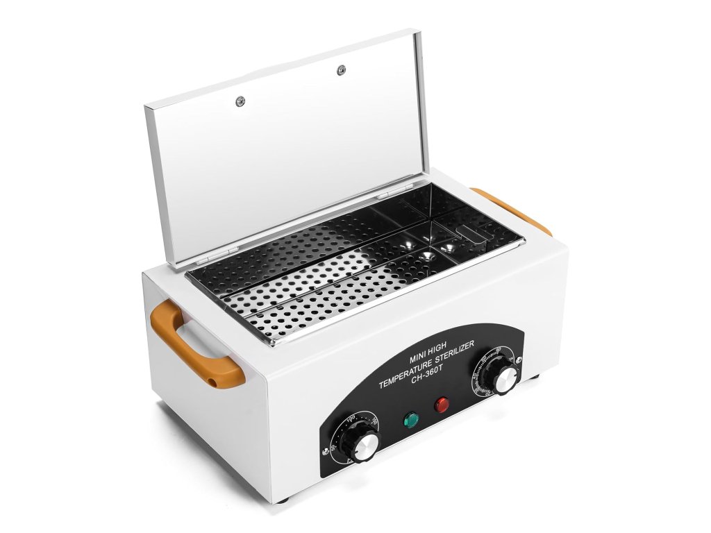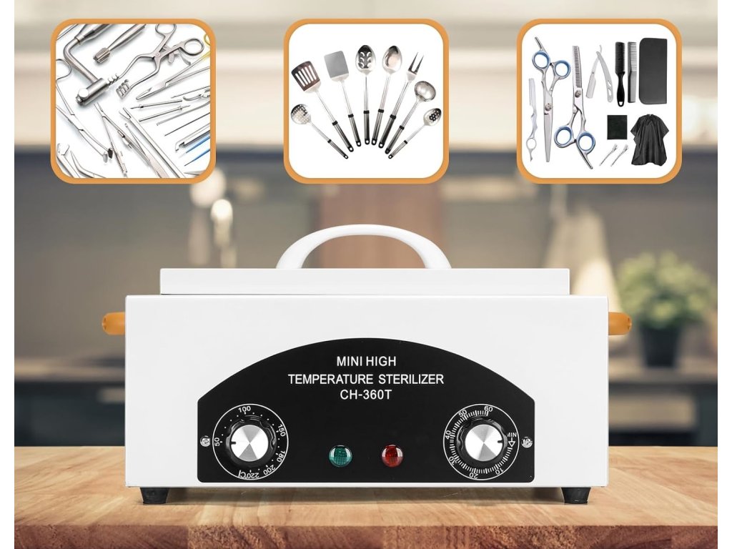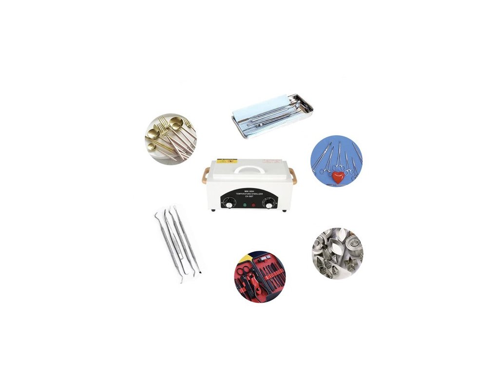 Praktični sterilizator vrućim zrakom prikladan je za širok raspon instrumenata. Idealan je za upotrebu u salonima, zdravstvenim ustanovama i domovima. Sterilizira npr.