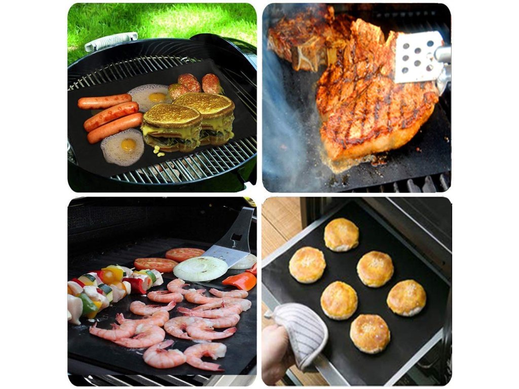 Ova jedinstvena višenamjenska teflonska podloga za roštilj pojednostavit će vaše svako iskustvo pečenja na roštilju. Pogodno za sve vrste hrane od mesa, ribe, povrća do jaja. Hrana će ostati mekana, nezagorena, sočna i ukusna. Otirač se nalazi izravno na rešetki, tako da vam više nikad neće propasti hrana. Ne roštiljati? Uopće nije bitno, prostirka se može koristiti kao zdravo "brisanje" lima za pečenje kada radite pizzu, pečete domaći kruh ili ukusan kolač. Pogodno za sve vrste hrane.