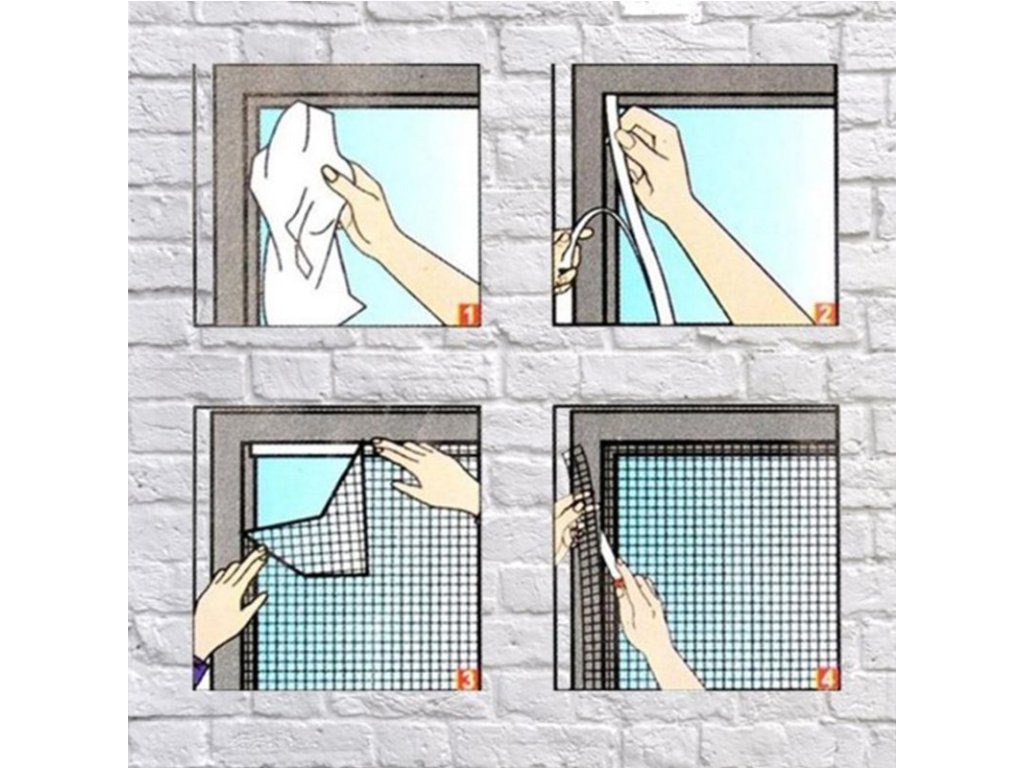 Pakiranje uključuje traku sa zaštitnim slojem. Izmjerite traku prema okviru prozora i izrežite je. Zatim skinete zaštitni sloj i zalijepite ga na okvir prozora. Samu mrežicu zatim pričvrstite na čičak traku koja je između ostalog izrađena od ugodnog najlona. Također možete odrezati višak mreže i savršena zaštita od komaraca je na svijetu.