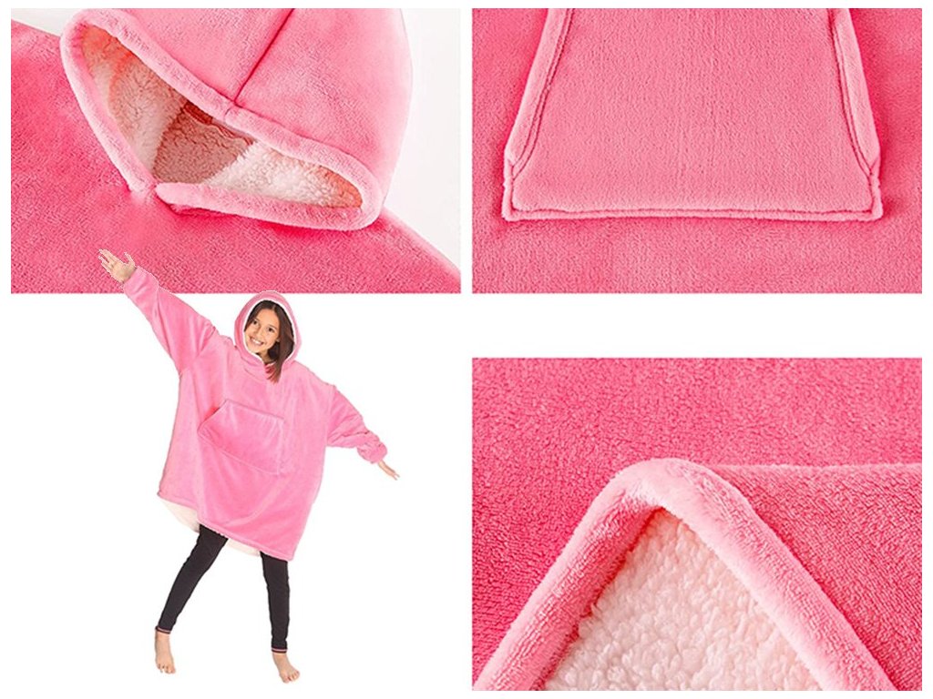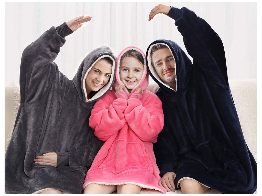 Ugodna topla majica i deka u jednom opremljena je praktičnom kapuljačom i širokim prednjim džepom. Ponudit će vam odlično rješenje za hladna jutra, boravak vani i večernje opuštanje za cijelu obitelj. Također ćete zagrijati ruke i savršeno zaštititi glavu od hladnoće.