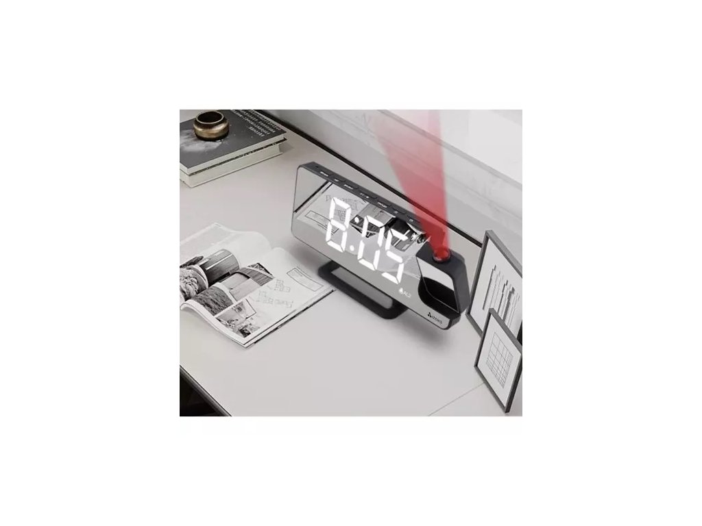 Multifunkcionalni sat s projektorom prikazuje vrijeme u 12h formatu. Zahvaljujući ugrađenom projektoru, vrijeme se može prikazati bilo gdje na zidu. LED osvjetljenje je lako čitljivo, ali ne odvlači pažnju zahvaljujući crvenoj boji.
