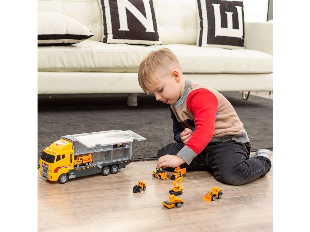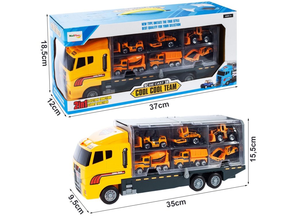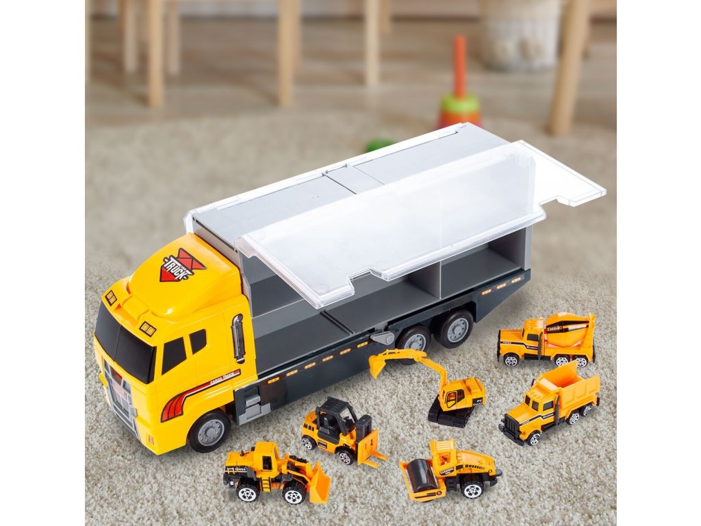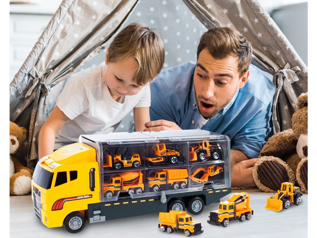 Bliži li se Božić, rođendan ili samo želite razveseliti svoje dijete? TIR kamion sa 6 građevinskih strojeva i automobila prikladan je za svaku priliku. Garantirano će izmamiti osmijeh na lice malih, ali i velikih.