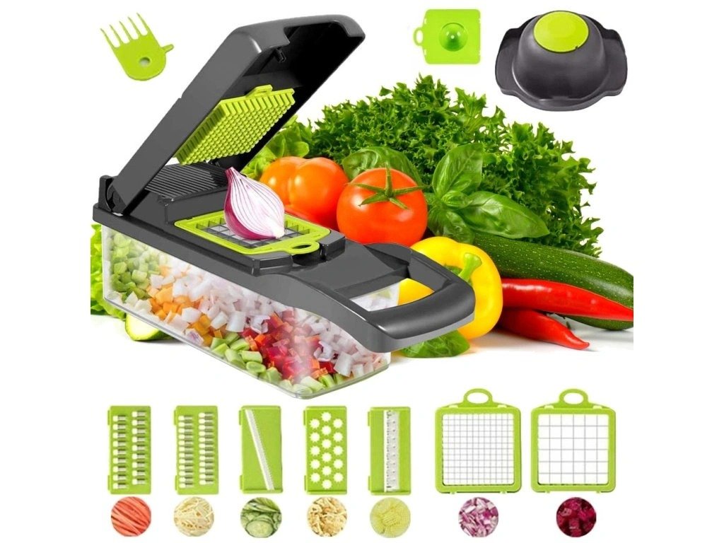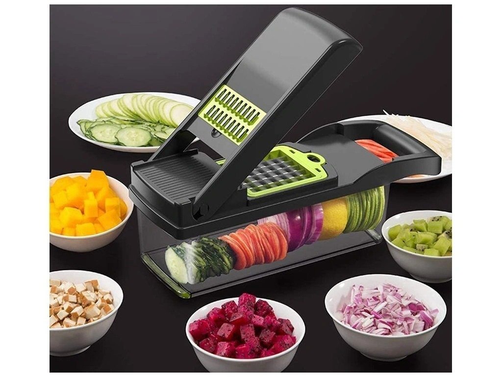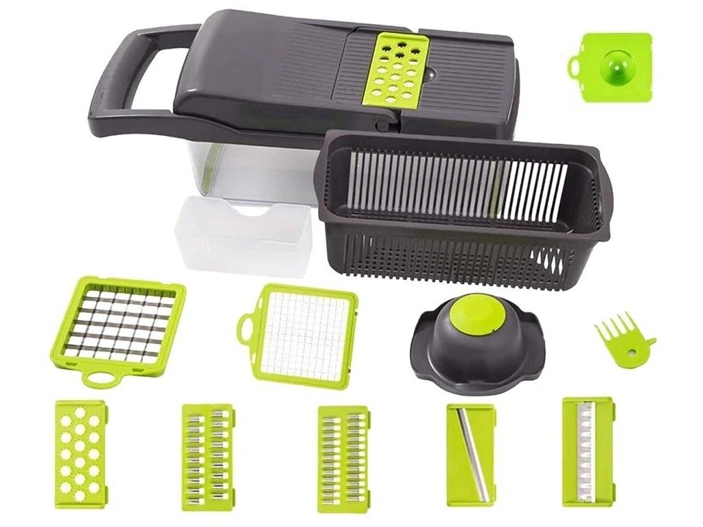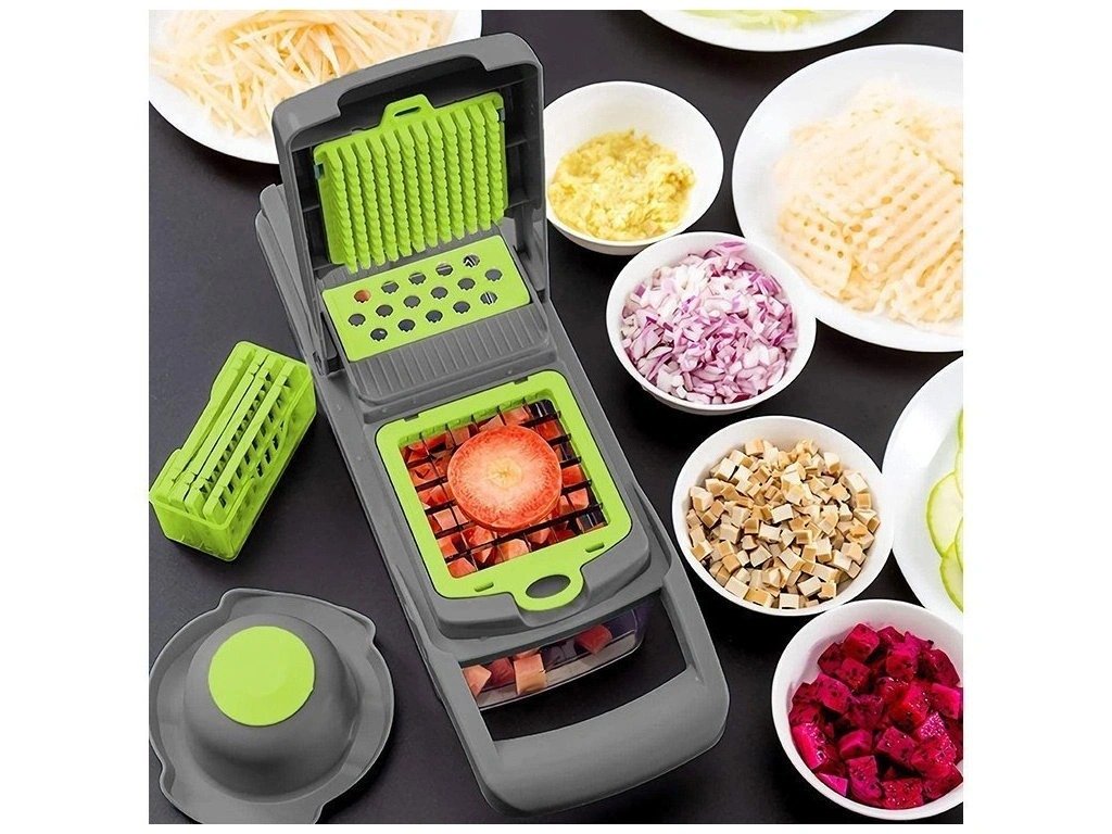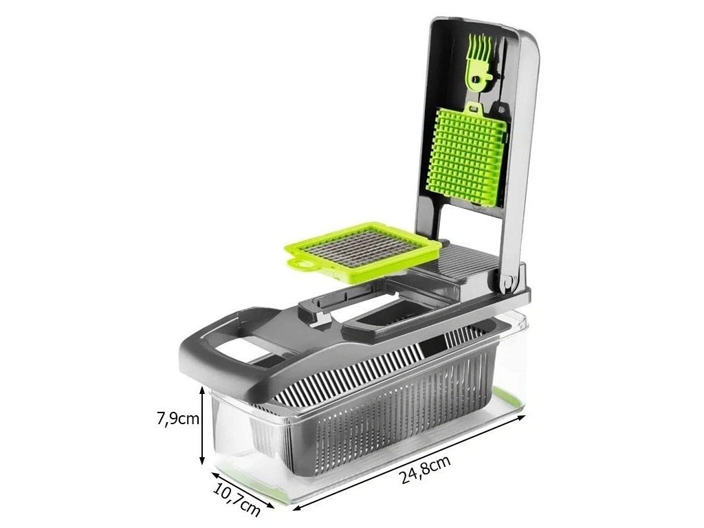 Kuhanje brzo, zdravo i jednostavno san je svakog kućanstva. Praktični ručni multifunkcionalni rezač s posudom učinit će vaš rad u kuhinji lakšim i ugodnijim. S ovim uređajem možete jednostavno narezati bilo koje voće, povrće, kuhana jaja ili sir na kockice ili trakice ili naribati kupus za salatu.