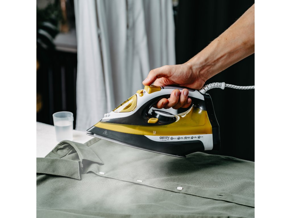 Keramička površina za glačanje jamstvo je glatkog klizanja glačala po bilo kojoj tkanini. Zahvaljujući šiljastom obliku, lako možete dosegnuti teško dostupna mjesta, poput rubova gumba ili uskih nabora. U isto vrijeme, ova površina smanjuje rizik od oštećenja tkanine i omogućuje bezbrižno glačanje osjetljivih materijala.