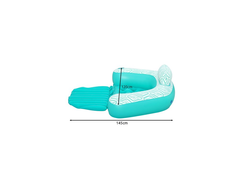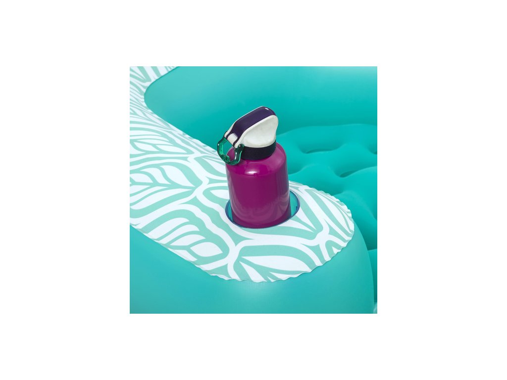 Držač za piće cijenit će svatko tko voli uživati u osvježavajućem piću bez ustajanja. Međutim, napuhavajuća vodena stolica iznenadit će vas i još jednim funkcionalnim dijelom, naime sklopivim osloncem za noge. Nakon sklapanja dobivate podignuto sjedalo.
